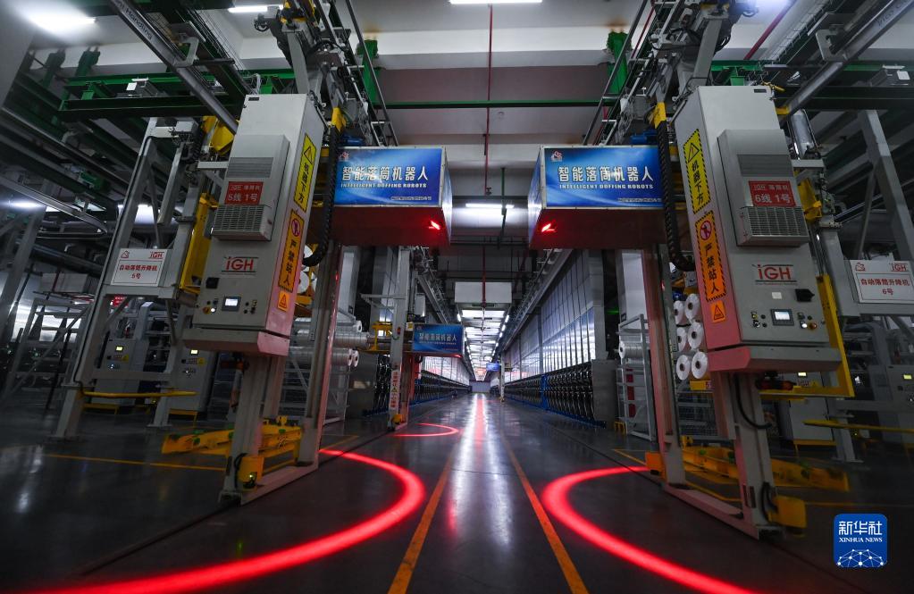位于桐鄉市洲泉鎮工業(yè)園區的桐昆集團浙江恒超化纖有限公司車(chē)間的自動(dòng)化生產(chǎn)線(xiàn)上,智能落筒機器人正在運行(2月2日攝)。春節期間,該公司的生產(chǎn)設備全負荷運轉,1000多名職工堅守在生產(chǎn)一線(xiàn),全力沖刺一季度“開(kāi)門(mén)紅”。