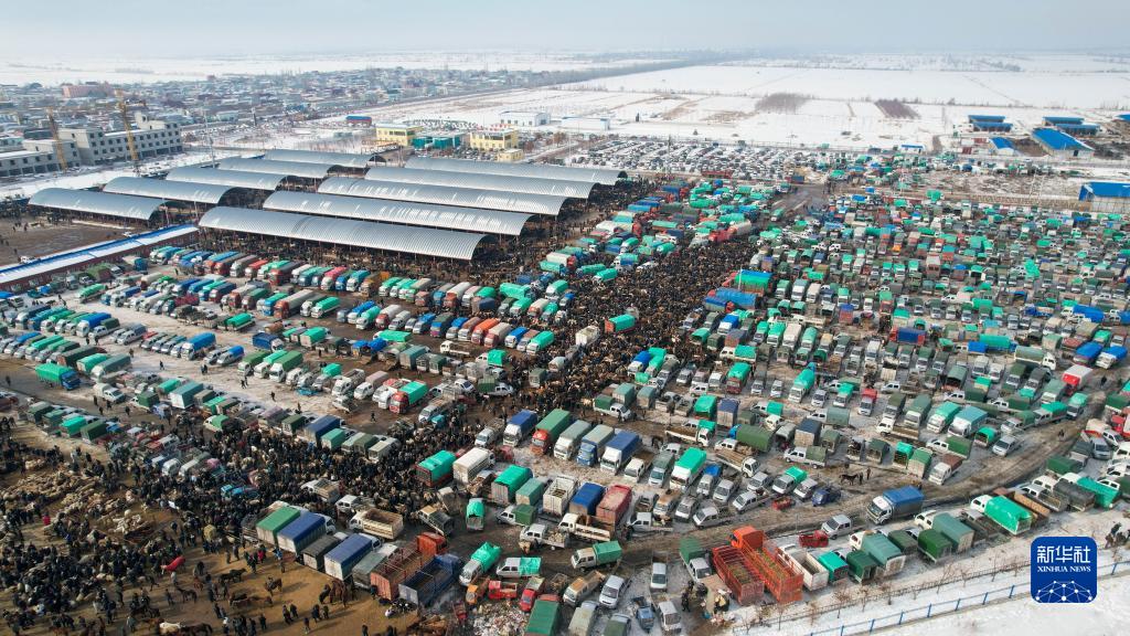 2月1日,位于新疆伊寧縣愉群翁回族鄉阿勒推村的新疆創(chuàng )錦黃公農產(chǎn)品交易市場(chǎng)開(kāi)市,市場(chǎng)商品琳瑯滿(mǎn)目,牛羊馬交易火爆。