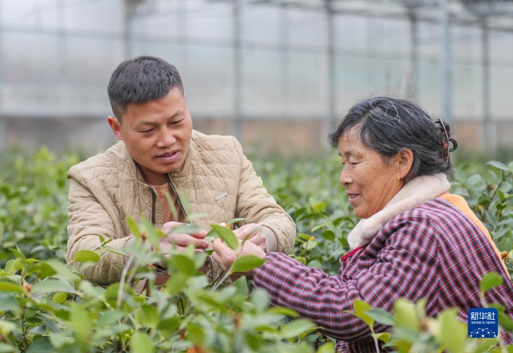 2月3日,技術(shù)人員(左)在貴州玉屏侗族自治縣油茶育苗中心對工人進(jìn)行技術(shù)指導。
