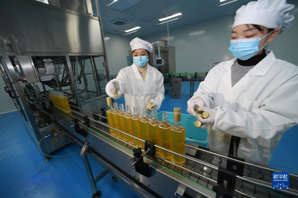 2月3日,在貴州玉屏侗族自治縣油茶基地的油茶加工企業(yè),工人在生產(chǎn)車(chē)間制油。