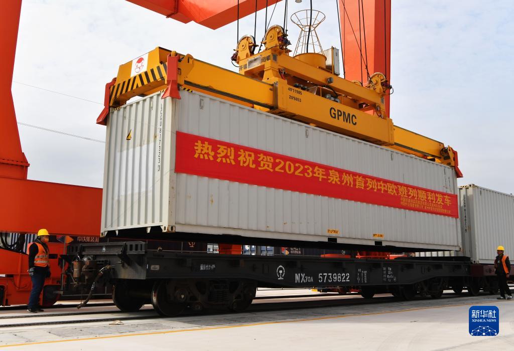 當日,滿(mǎn)載著(zhù)55個(gè)集裝箱的中歐班列,從位于福建泉州惠安縣的興泉鐵路黃塘站駛出。這是泉州今年開(kāi)出的首趟中歐班列,也是興泉鐵路開(kāi)通后的首趟泉州中歐班列。據了解,此次班列裝載產(chǎn)品主要來(lái)自泉州進(jìn)出口企業(yè),貨重601.4噸,貨值約262.5萬(wàn)美元。