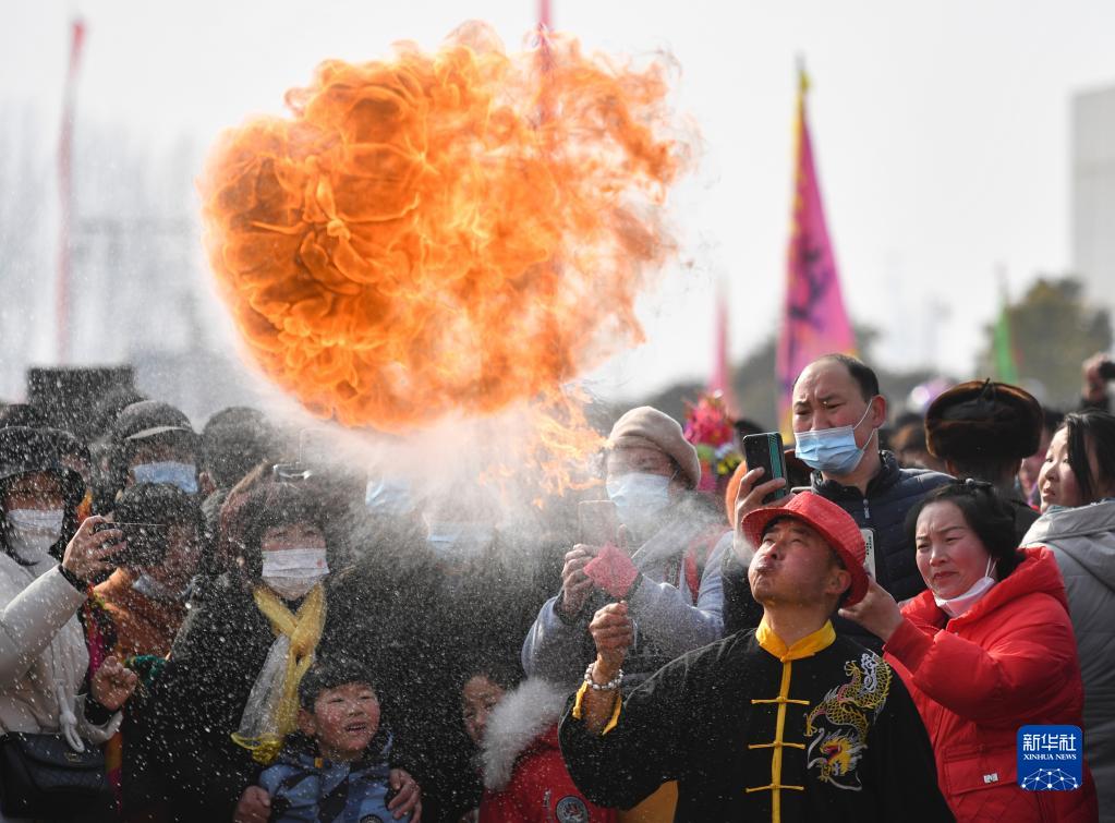 2月3日,藝人在表演吐火。