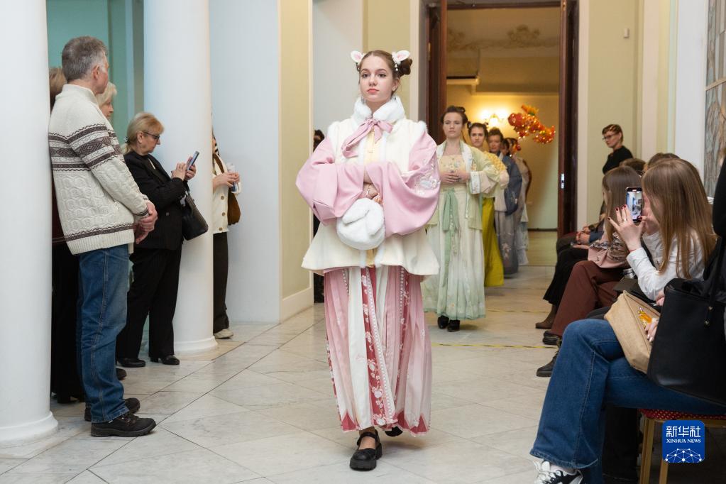 1月30日,觀(guān)眾在俄羅斯圣彼得堡凱瑟琳禮堂欣賞中式服裝秀。