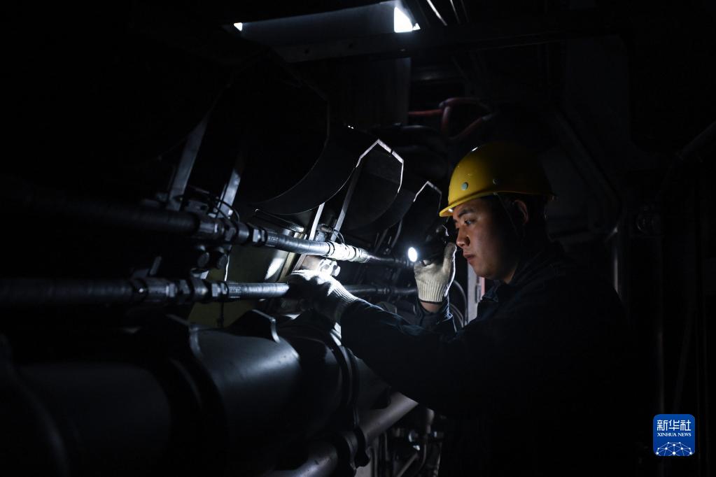 2月4日,在格爾木機務(wù)段檢修車(chē)間,馬國仁在檢修機車(chē)。