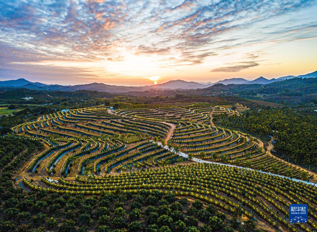 2月1日在海南省三亞市育才生態(tài)區拍攝的“水果島”火龍果基地(無(wú)人機照片)。