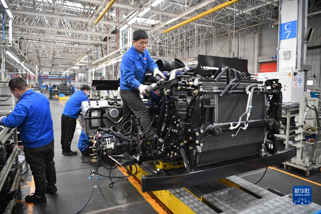 2月2日,工人在陜汽控股集團重卡總裝車(chē)間裝配零件。