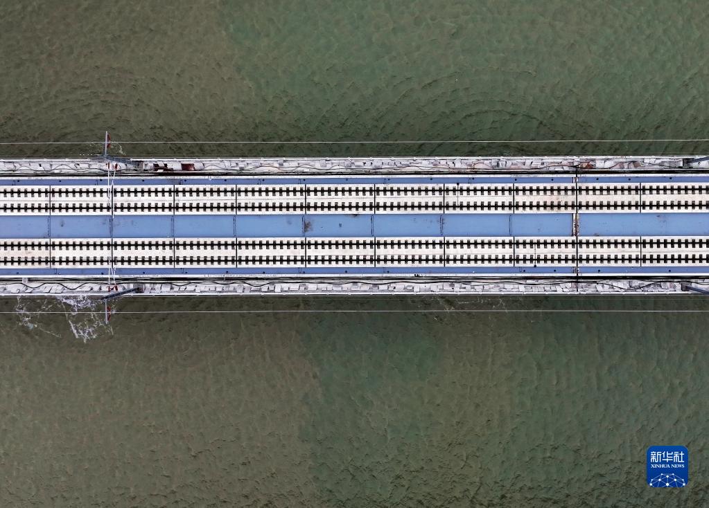 這是2月4日拍攝的新建福廈鐵路泉州灣跨海大橋(無(wú)人機照片)。