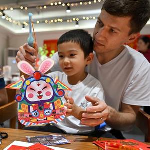 2月4日,參加活動(dòng)的外國人體驗制作燈籠。