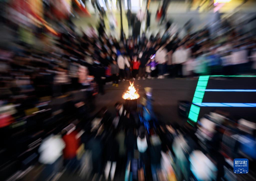 2月4日,游客在殷墟考古文旅小鎮參加篝火活動(dòng)。