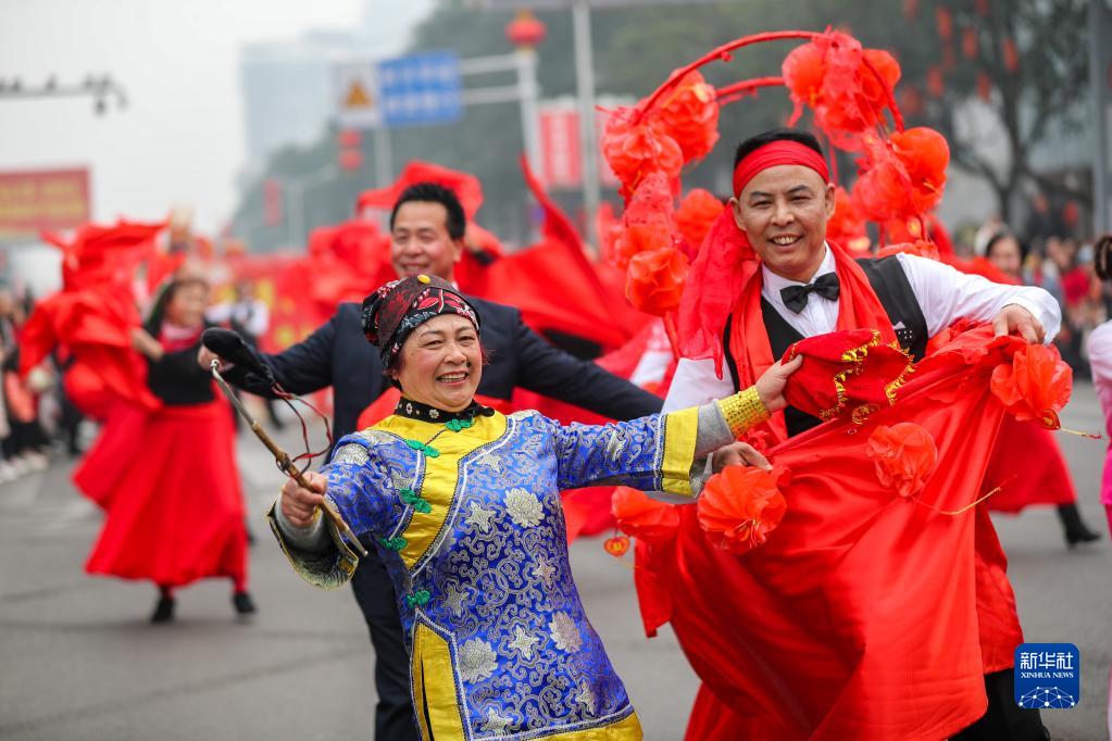 2月5日,在四川省宜賓市長(cháng)寧縣,民間藝人進(jìn)行民俗表演。