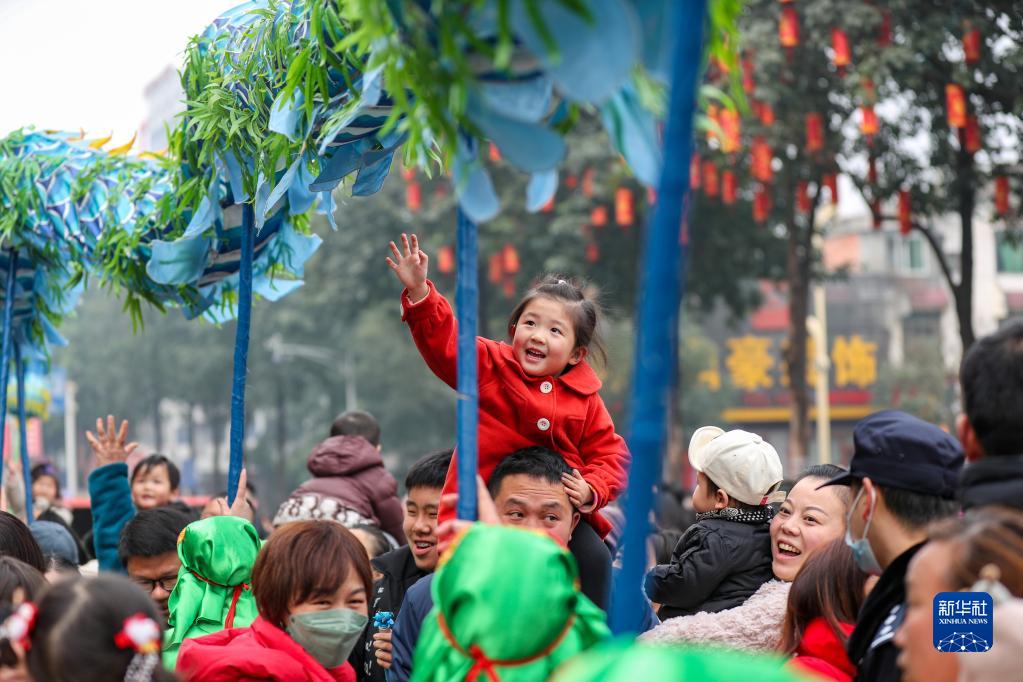 2月5日,在四川省宜賓市長(cháng)寧縣,小女孩在摸龍祈福。