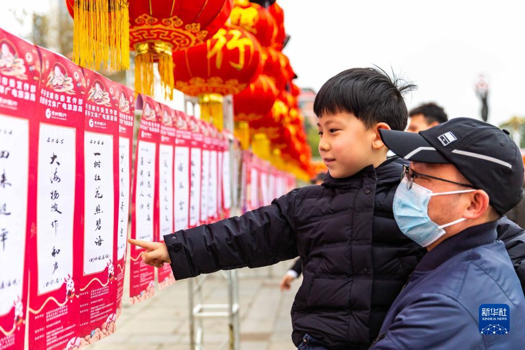 2月5日,市民在貴州省安順市西秀區若飛廣場(chǎng)元宵節活動(dòng)中猜燈謎。