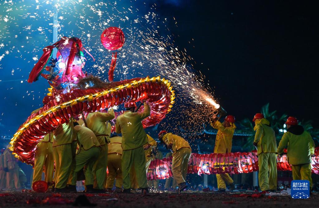 2月4日晚,人們在臺江縣參加苗族“舞龍噓花”活動(dòng)。