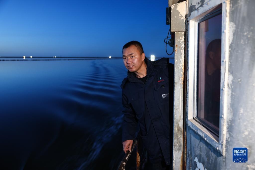 2月2日晚間,賀連福乘坐工作船離開(kāi)水采船。