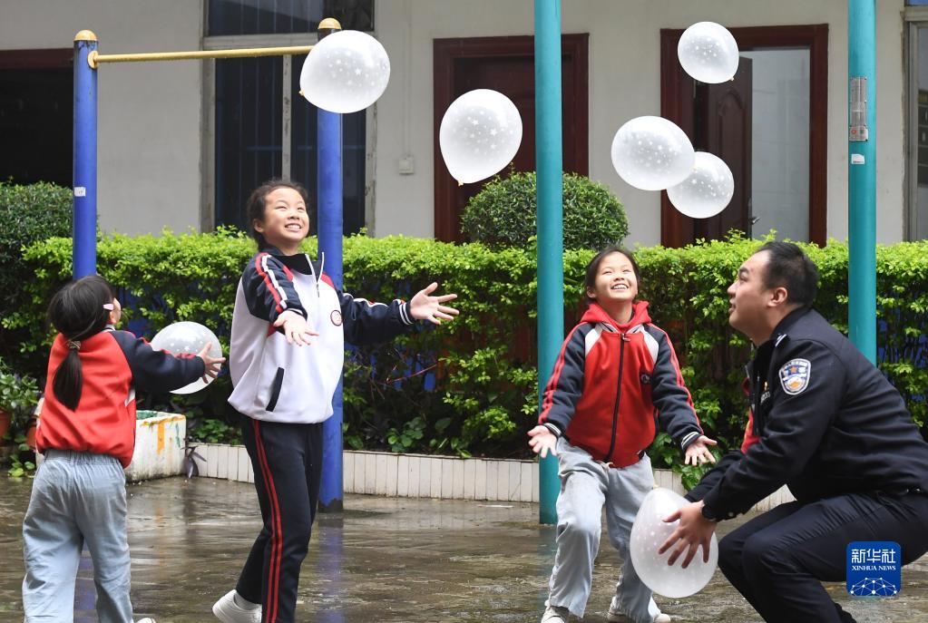 2月5日,南寧鐵路公安局南寧公安處賓陽(yáng)站派出所民警與三姐妹一起玩氣球。家住賓陽(yáng)縣和吉鎮三叉村的呂秀清、呂秀萍和呂秀玲三姐妹,是當地的留守兒童,派出所青年民警志愿者常常利用業(yè)余時(shí)間輔導她們學(xué)習,疏導心理,至今已經(jīng)4年。