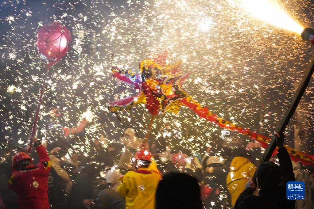 2月5日,人們在貴州省黔東南苗族侗族自治州丹寨縣參加“舞龍噓花”活動(dòng)。
