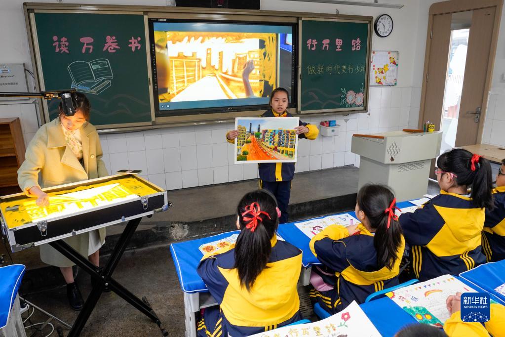 2月6日,在重慶市九龍坡區鐵路小學(xué)五年級2班的開(kāi)學(xué)第一課上,一名學(xué)生在外援老師的沙畫(huà)配合下,結合自己的繪畫(huà)作品講述寒假期間的旅行見(jiàn)聞。學(xué)校希望通過(guò)開(kāi)展“美學(xué)秀”開(kāi)學(xué)第一課引導學(xué)生發(fā)現生活之美和閱讀的樂(lè )趣。