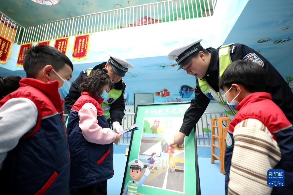 2月6日,在隆堯縣實(shí)驗幼兒園,交警為小朋友講解交通安全知識。