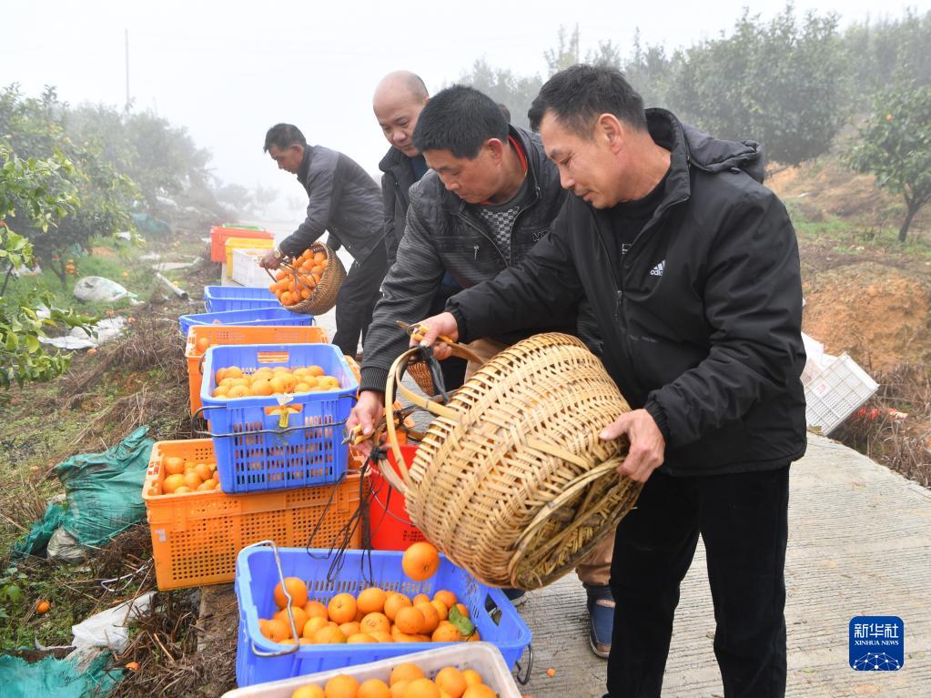 在福斗村大森林碩豐農業(yè)高山水果基地,工人在采收沃柑(2月5日攝)。