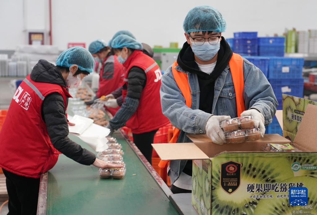 2月6日,在位于武功縣的京東物流陜西智能供應鏈中心,工作人員在包裝獼猴桃。