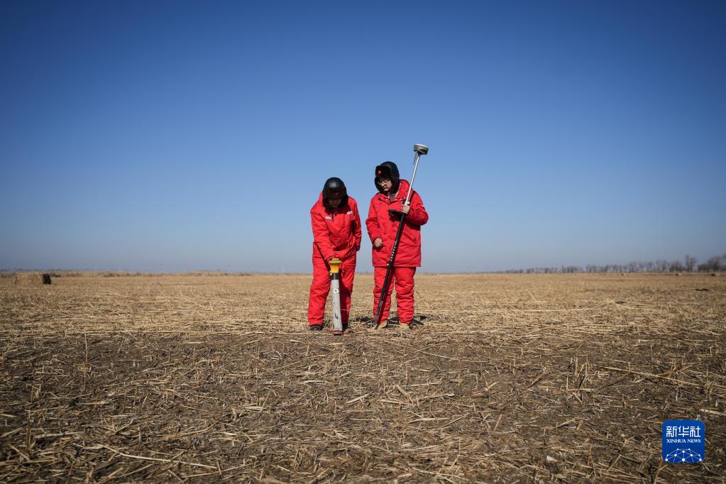 2月6日,中國石油遼河油田興隆臺輸氣分公司巡線(xiàn)工人在測量數據。