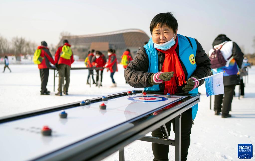 2月7日,人們在活動(dòng)現場(chǎng)體驗迷你冰壺項目。