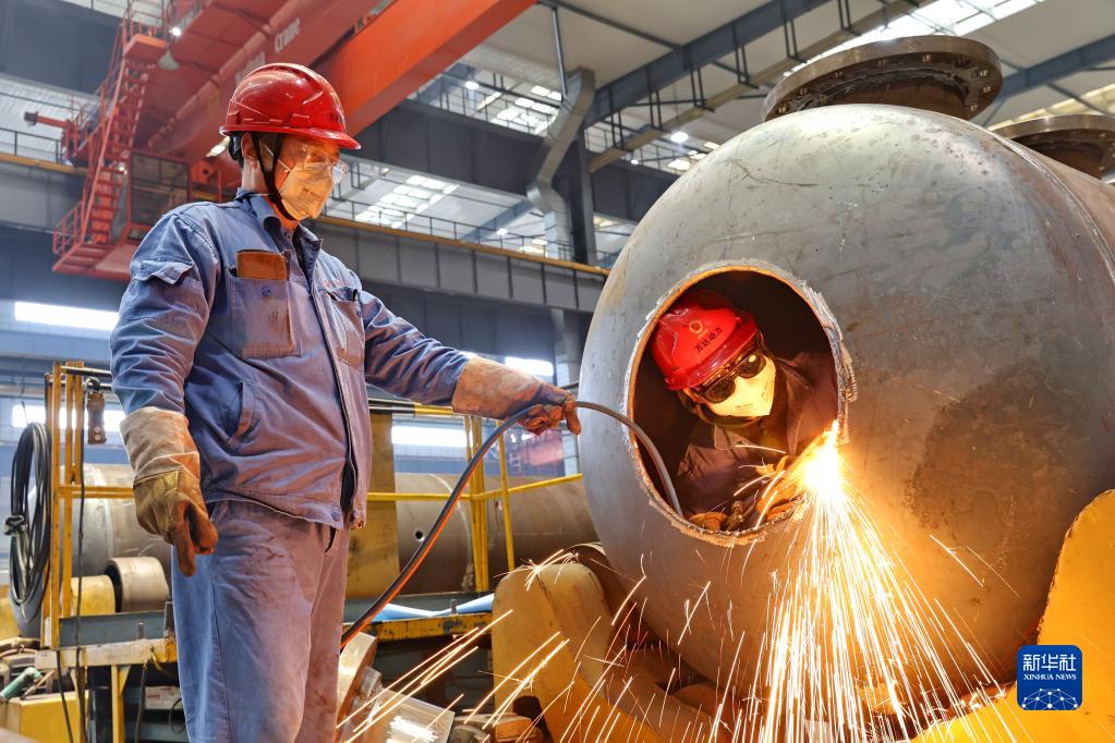 2月6日,江蘇南通萬(wàn)達能源動(dòng)力科技有限公司的工人在生產(chǎn)車(chē)間趕制出口節能環(huán)保鍋爐訂單產(chǎn)品。