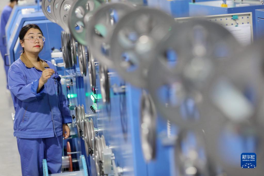 2月7日,工人在浙江省湖州市德清經(jīng)濟開(kāi)發(fā)區一家線(xiàn)纜企業(yè)生產(chǎn)車(chē)間生產(chǎn)網(wǎng)絡(luò )數據線(xiàn)纜。