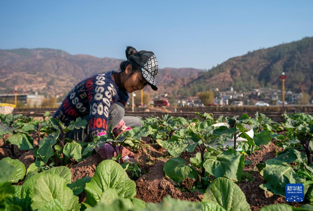 2月7日,在云南省大理白族自治州南澗彝族自治縣楊免莊村,農民在田間除草。