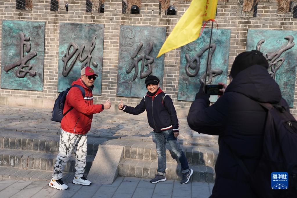 2月7日,香港游客在北京八達嶺長(cháng)城“不到長(cháng)城非好漢”浮雕前合影留念。