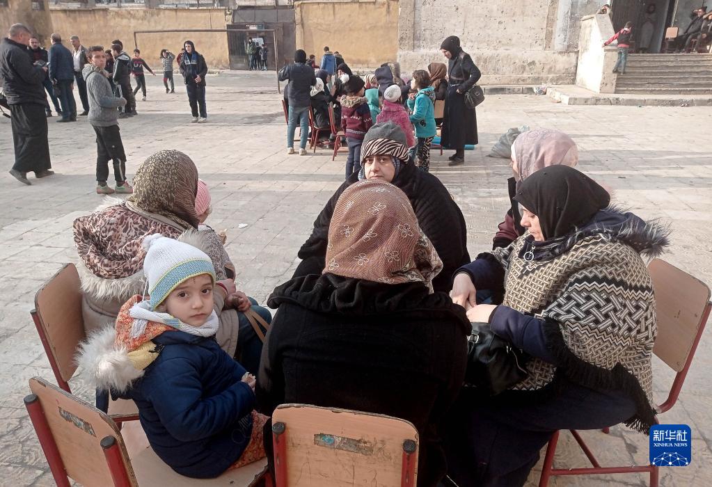 2月7日,受地震影響的人們在敘利亞阿勒頗省的一處安置點(diǎn)休息。