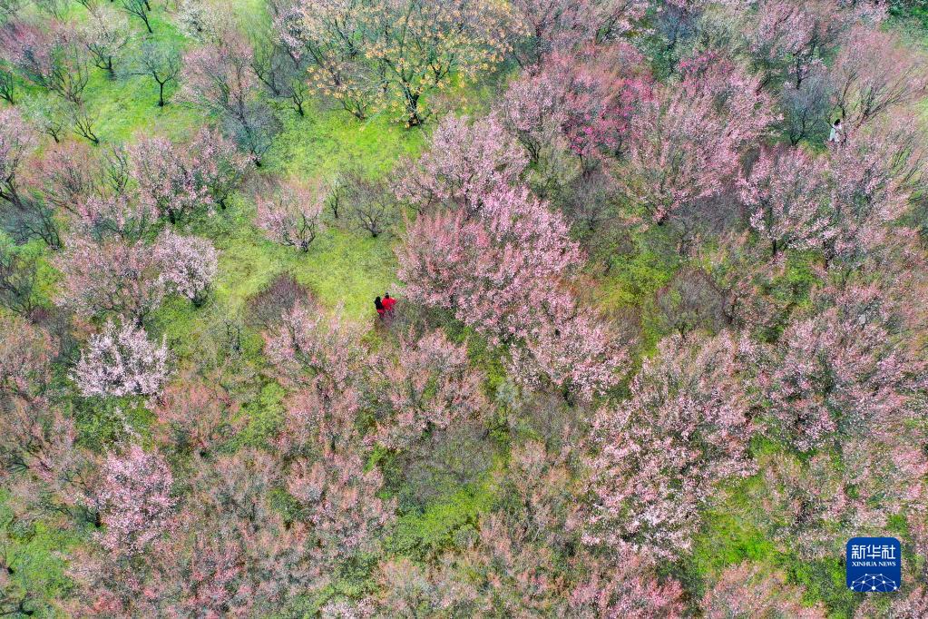 2月7日在江蘇揚州蜀岡西峰拍攝的梅花(無(wú)人機照片)。