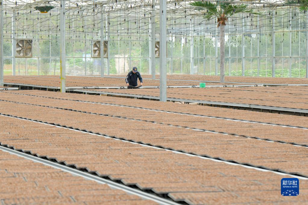 2月8日,工人在貴州省遵義市一家辣椒集中育苗工廠(chǎng)忙碌。
