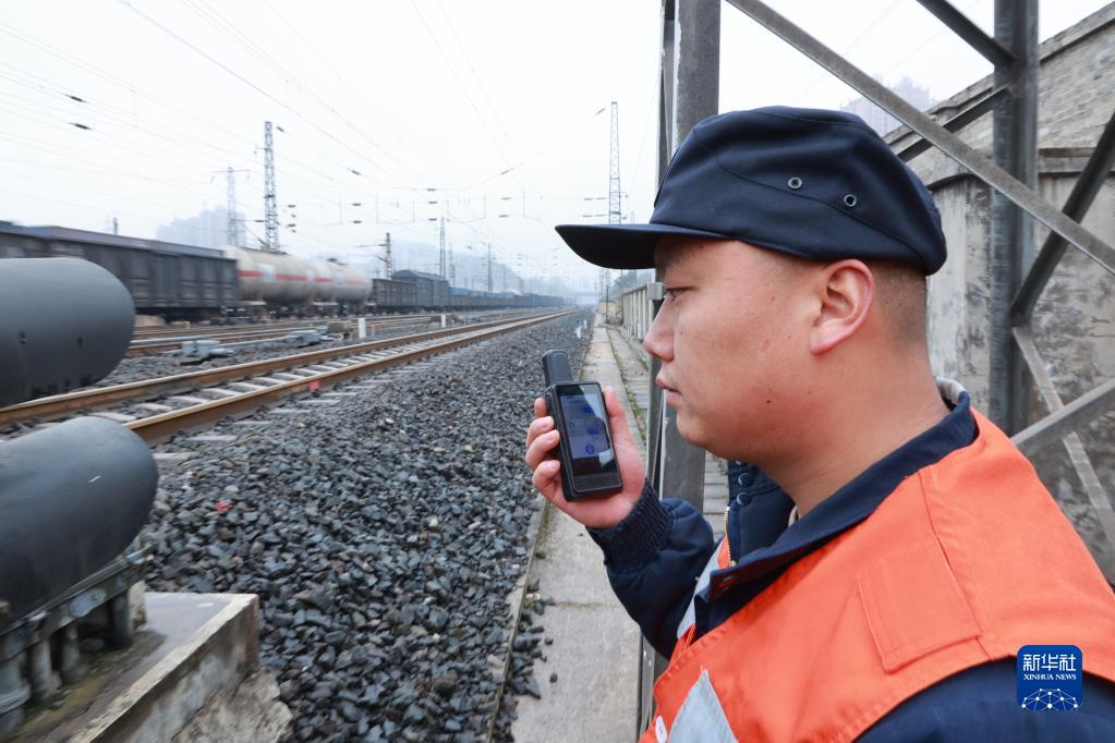 2月8日,貴陽(yáng)電務(wù)段工作人員利用北斗防護系統設備與后臺聯(lián)絡(luò )。