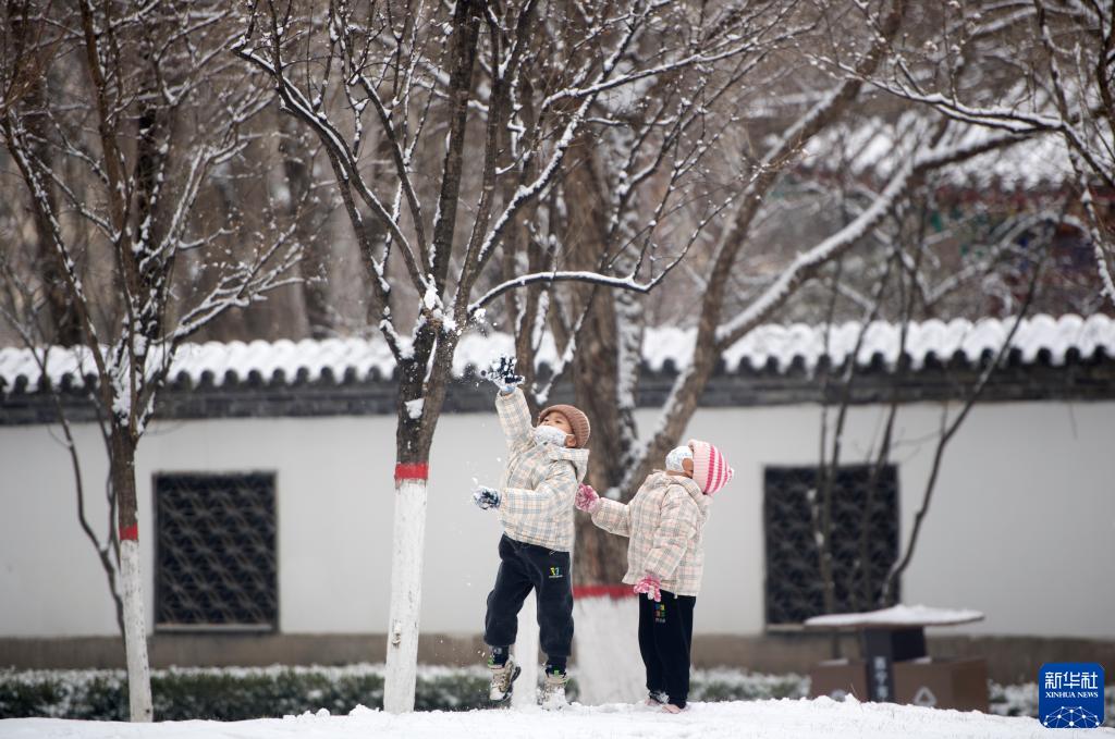 2月8日,青海省西寧市,小朋友在人民公園內玩耍。