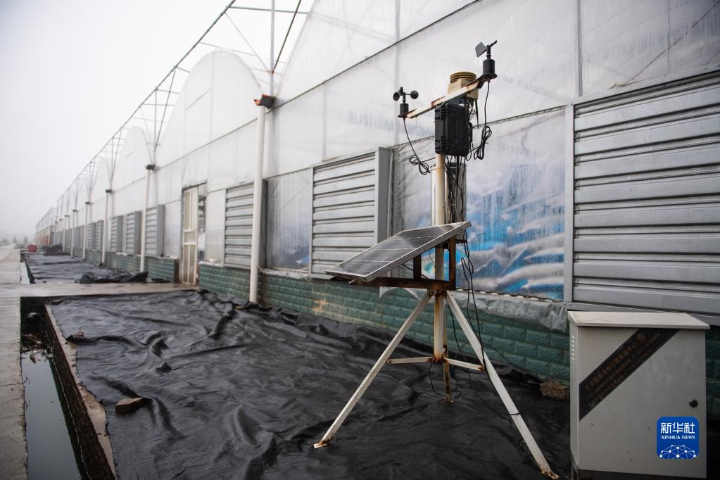 這是2月8日在鼎城區國家現代農業(yè)產(chǎn)業(yè)園一處蔬菜育苗基地拍攝的氣象信息收集系統。