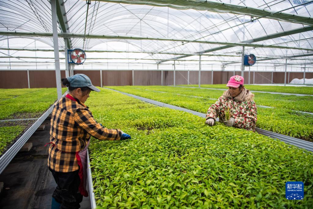 2月8日,在鼎城區國家現代農業(yè)產(chǎn)業(yè)園一處蔬菜育苗基地,工作人員在清理蔬菜育苗盤(pán)中的雜草。