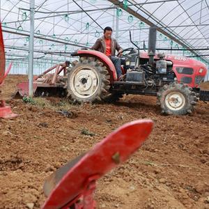 2月8日,貴州省龍里縣灣灘河鎮走馬村農民駕駛農機在田里翻耕土地。