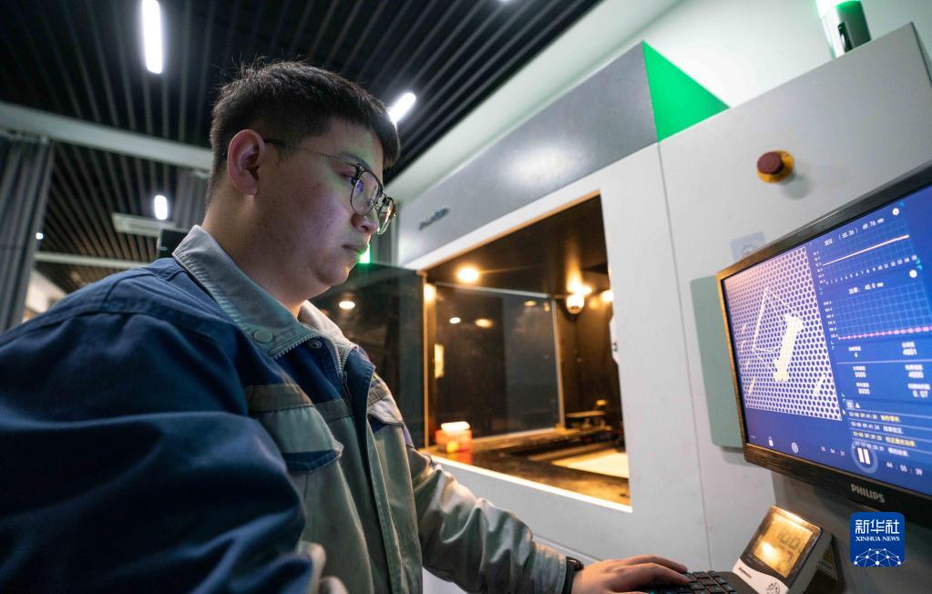 2月8日,河北滄州渤海新區黃驊市一家模具生產(chǎn)企業(yè)工人操作設備進(jìn)行3D打印作業(yè)。