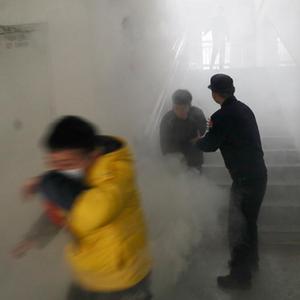 2月8日,四川省華鎣市交警在銅堡中學(xué)給學(xué)生展演交通安全手勢操。