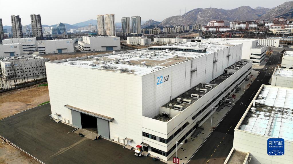 青島東方影都影視產(chǎn)業(yè)園內面積達1萬(wàn)平方米的22號攝影棚(2月8日攝,無(wú)人機照片)。