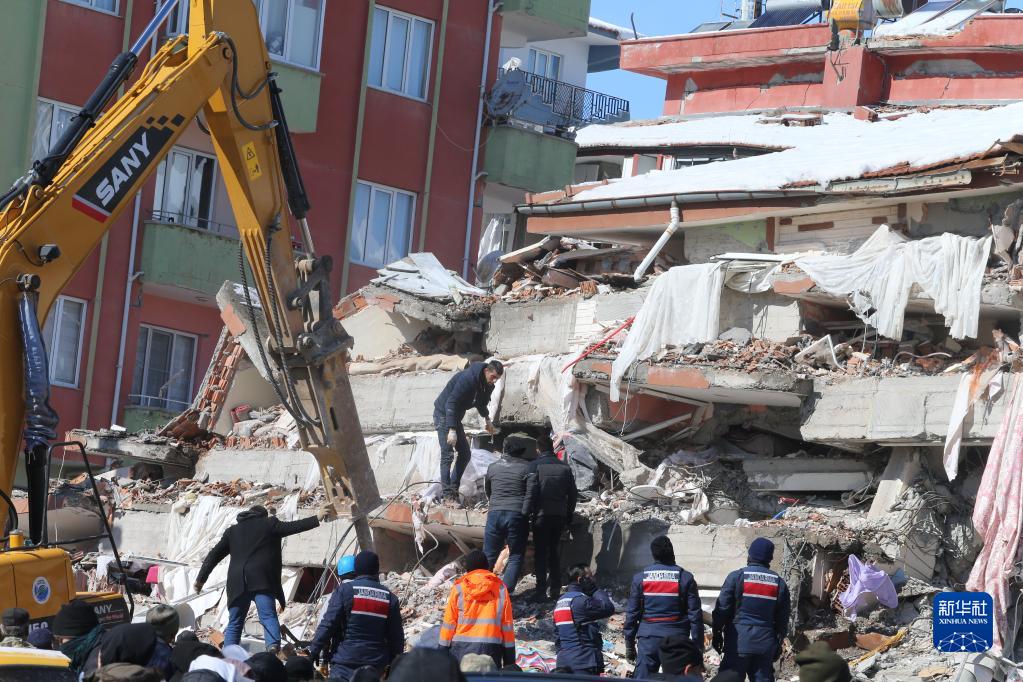 2月8日,在土耳其阿德亞曼省貝斯尼,救援人員在地震廢墟搜救。