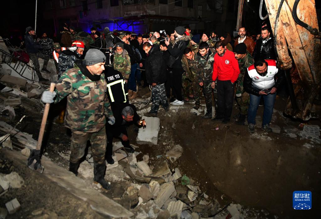 2月8日,救援人員在敘利亞大馬士革的一處地震廢墟搜救。