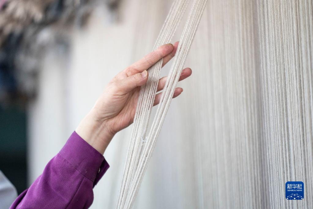在青海省西寧市圣源地毯集團有限公司生產(chǎn)車(chē)間,操作工在梳理紗線(xiàn)(2月1日攝)。