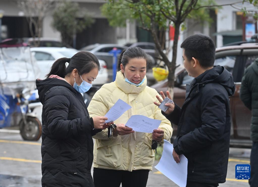 2月9日,在廣西融水苗族自治縣易地扶貧安置點(diǎn)苗美家園社區,求職者和招聘人員在交流。