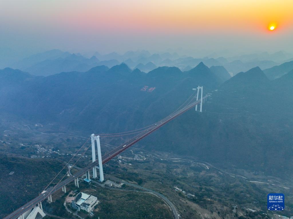 2月1日拍攝的貴州壩陵河大橋(無(wú)人機照片)。