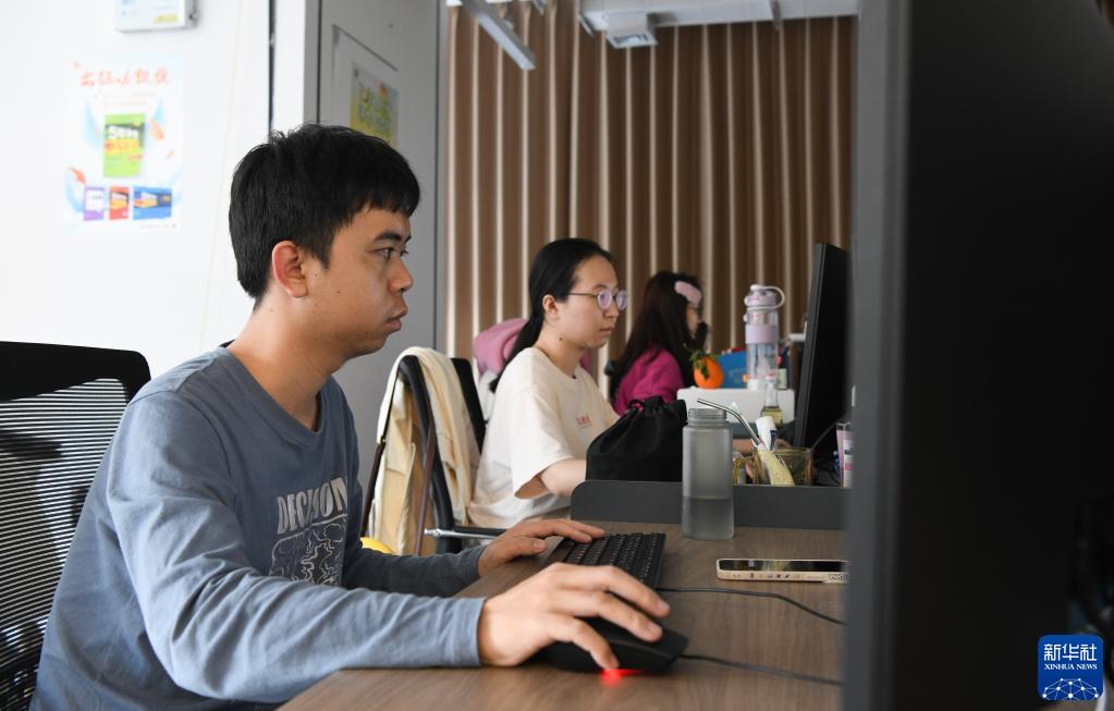 在海南自由貿易港??趶团d城互聯(lián)網(wǎng)信息產(chǎn)業(yè)園一區內,企業(yè)員工在國際離岸創(chuàng )新大廈內辦公(2月8日攝)。