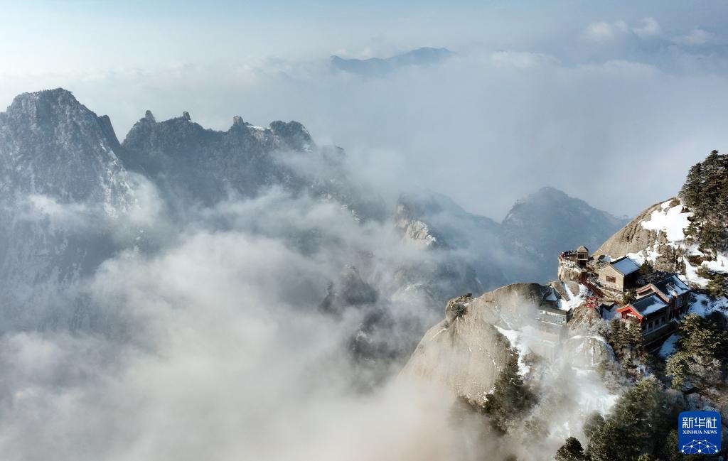 當日,雪后的西岳華山風(fēng)景區云霧繚繞,猶如人間仙境。
