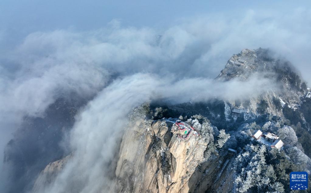 當日,雪后的西岳華山風(fēng)景區云霧繚繞,猶如人間仙境。