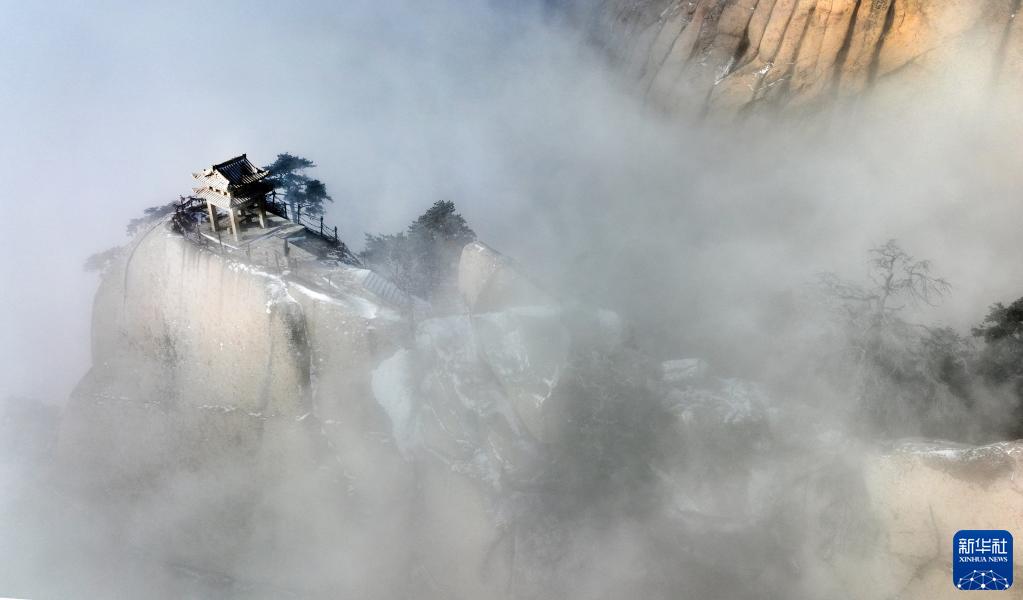 當日,雪后的西岳華山風(fēng)景區云霧繚繞,猶如人間仙境。